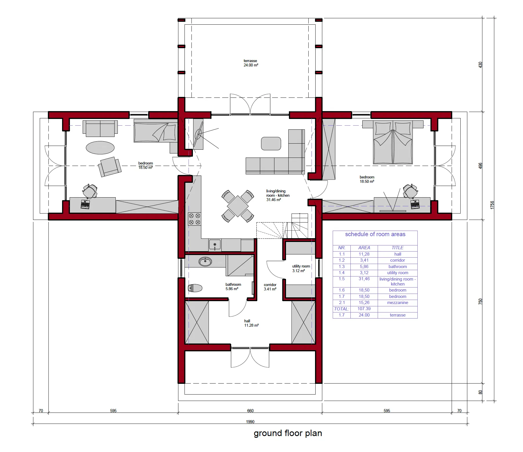 Bendras namo plotas – 32 m², o papildomai galima įrengti apie 16 m² lauko terasą.